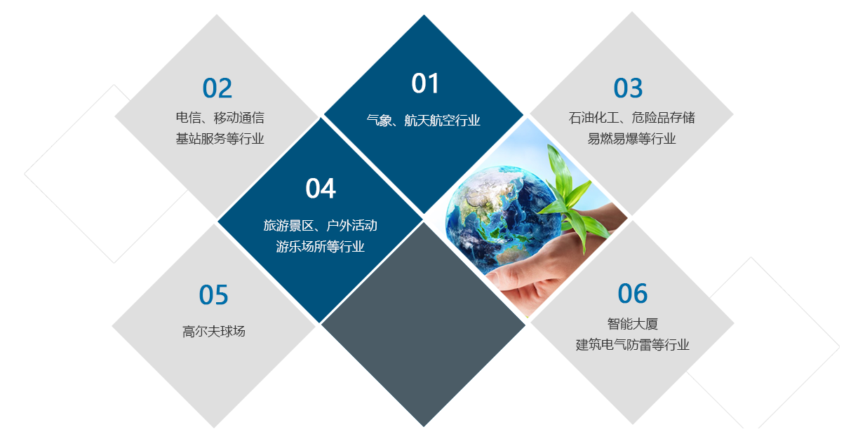 成功運用在:大型油庫,石化場所,景區,校園等人員密集型區域的雷電預警系統,能夠及時的提供雷電預警信息,激活雷電預防預案,從而很大程度上減少人員財產損失和傷害。