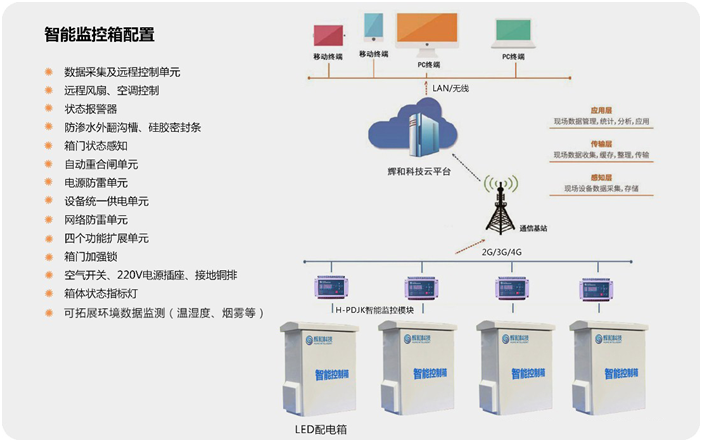 輝和LED智能配電監控運維系統分為:數據采集層 、信息傳輸以及輝和科技云管理平臺。