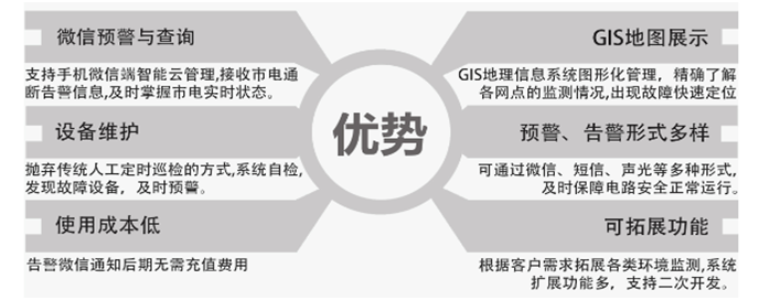 該系統完全基于網絡傳輸,管理人員可以隨時隨地了解市電通斷狀態信息,提供完善的監測和報警平臺,并可以生成豐富的監測報告;該系統支持Web瀏覽器,管理人員可以通過遠程網絡瀏覽各網點市電狀況;該系統支持多站管理,適應多個監控現場集中監控的需要;該系統支持微信、短信息等報警方式,一旦發生意外及時通知管理人員;該系統具有嚴密的權限管理功能,可以設定不同管理人員的瀏覽和操作權限。